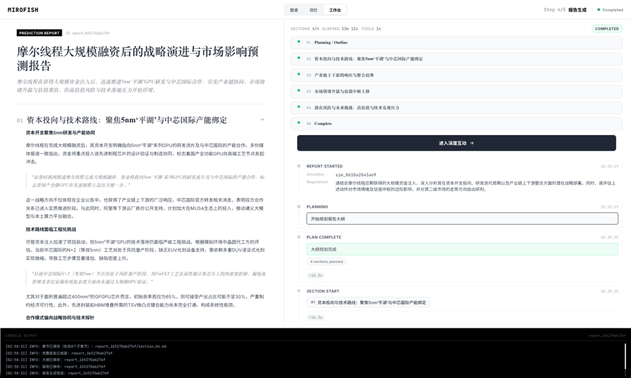 在郭航江看来,MiroFish很适合用来模拟预测重大社会事件的走向、分析大公司的战略动向,甚至分析文学作品的复杂人物关系和续写结局。